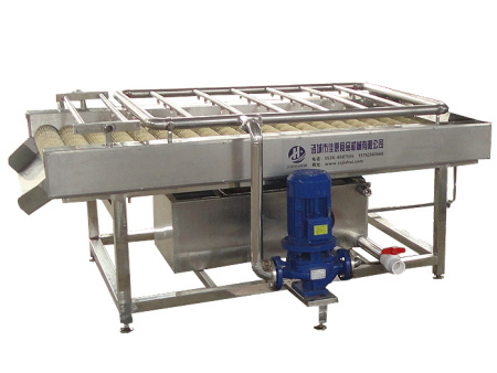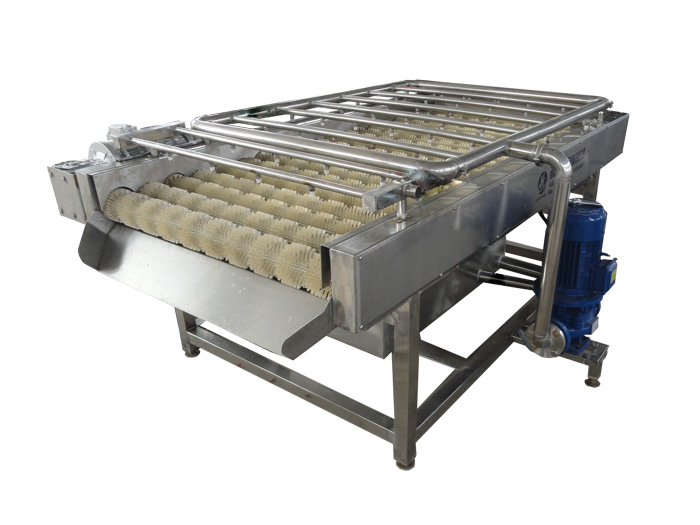 2、高壓噴淋毛輥清洗機采用高壓噴淋清洗,清洗能力大、洗凈率高且不損傷物料,特別適合嬌嫩果蔬,雜質多、難去除的食品清洗。